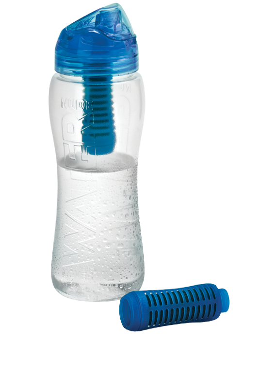 Bidon wykonany został z wytrzymałego tworzywa K-Resin, które jest wyjątkowo przeźroczyste oraz odpowiednio sztywne. Ustnik i obudowa filtra są wykonane z bezpiecznego tritanuTM, który jest trwalszy od plastiku, jest odporny na zarysowania i ścieranie się. TritanTM oraz K-Resin nie zawierają bisfenolu A (BPA) i są lżejsze od szkła.