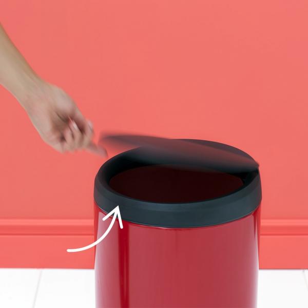 Mechanizm otwierający kosz 'FlipBin'  jest prosty w użyciu, wystarczy lekko dotknąć pokrywę, a ona cicho unosi się ku górze. Pokrywę można zdjąć, aby wyrzucić odpadki i założyć nowy worek. Kolorowa obręcz, która delikatnie wystaje na zewnątrz nadaje koszowi całkowicie świeżego wyglądu.