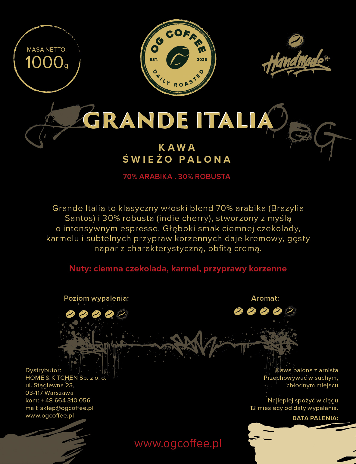 OG COFFEE GRANDE ITALIA, KAWA ŚWIEŻO PALONA, 1 KG