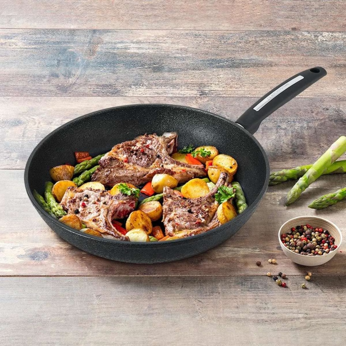 Patelnia zaprojektowana z myślą o codziennych potrzebach związanych z gotowaniem i smażeniem. Naczynie umożliwia równomierne smażenie i maksymalną akumulację temperatury.